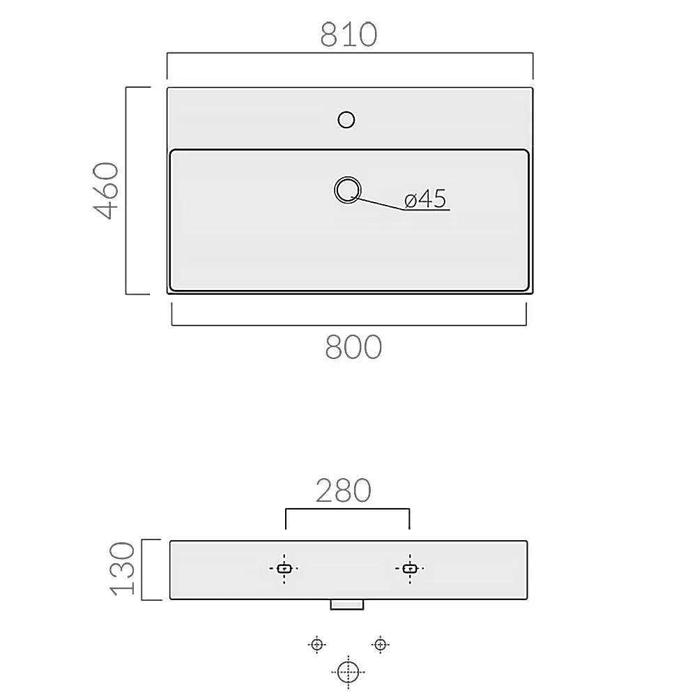 Meg11Pro/8973 раковина подвесная cm. 81x46см, с 1 отверстием, с переливом, белый