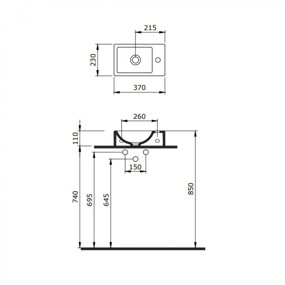 • Раковина SMALL 37х23 см смеситель слева, 182009