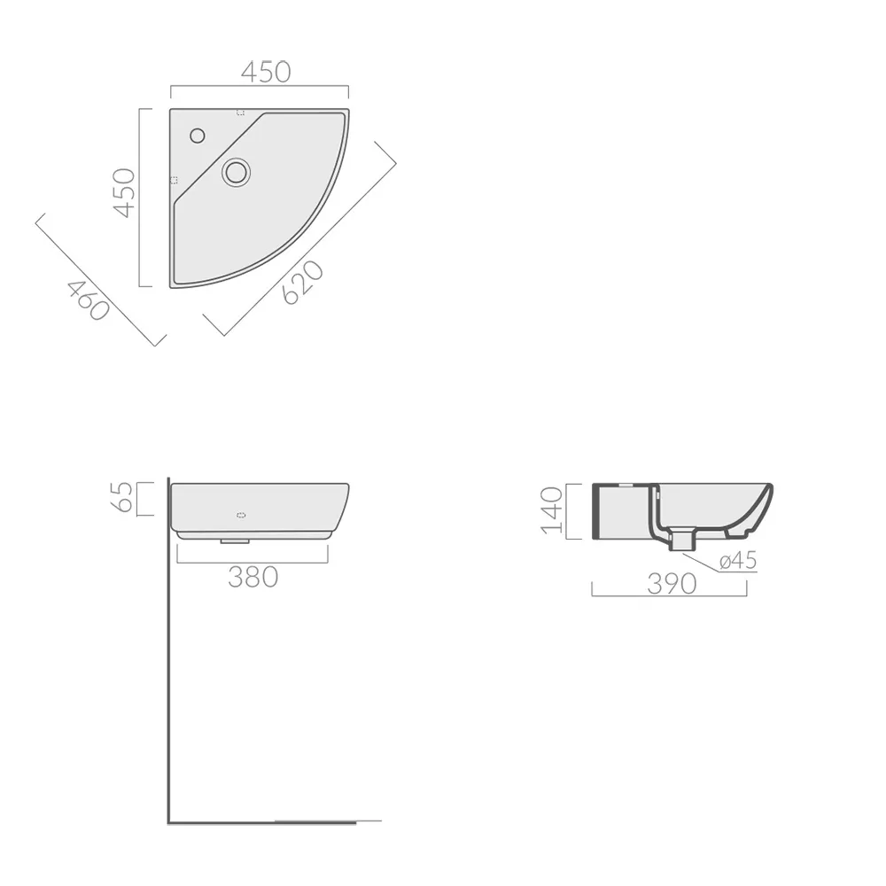 M2/5202 Раковина угловая 45*45см, с одним отверстием, белая