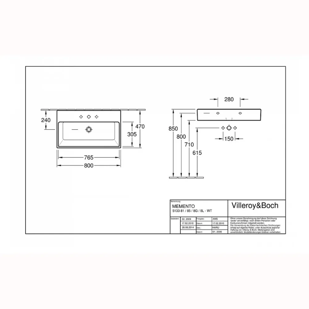 Раковина Villeroy & Boch Memento 51338GS0 80 см Glossy Black