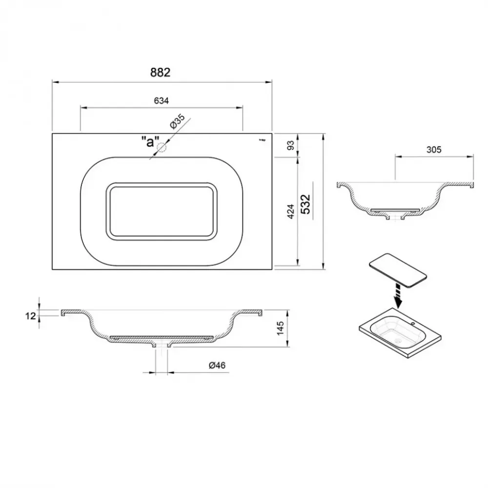 Технические характеристики Раковина встраиваемая Sanitana SMOOTH 90