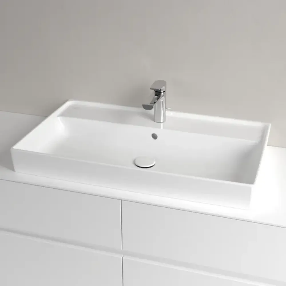 Villeroy & Boch Collaro Pаковина для установки на тумбу, 800 x 465 x 160 mm, Альпийский белый CeramicPlus, с переливом, шлифованный