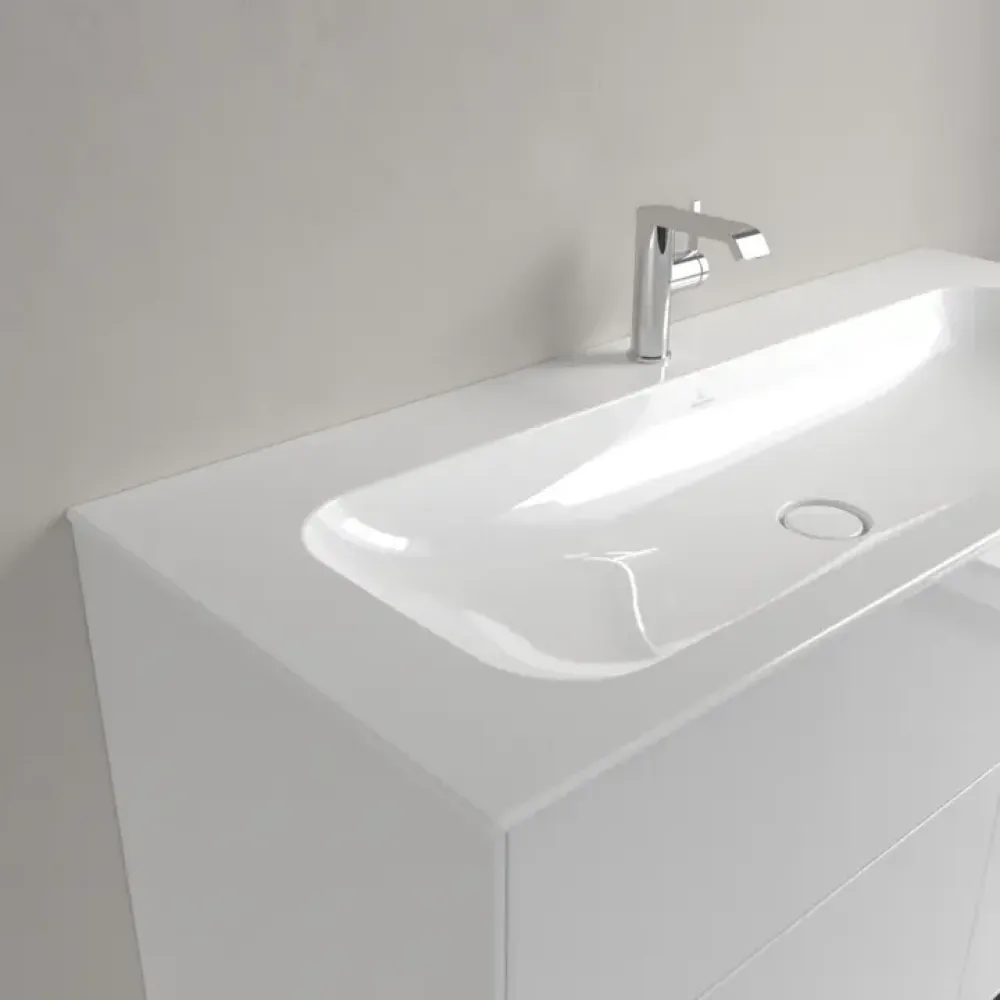 | МатериалTitanCeram | Поверхностьглянцевый | Подходит дляСмеситель с 1 отверстием, Подходящая мебель Villeroy & Boch |