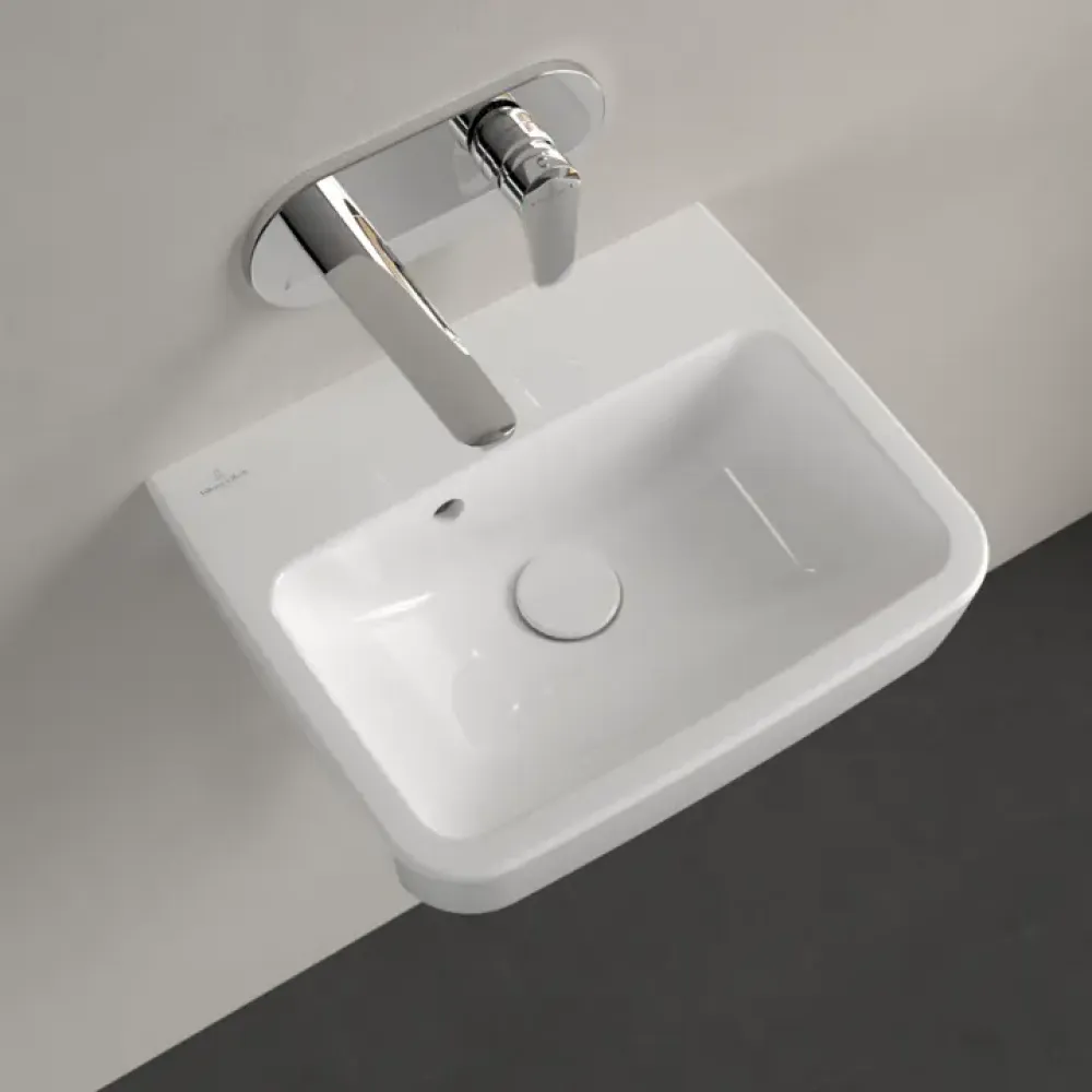 Villeroy & Boch O.novo Раковина компактная, 450 x 370 x 160 mm, Альпийский белый, с переливом, задняя сторона и нижняя сторона шлифованные 43444J01
