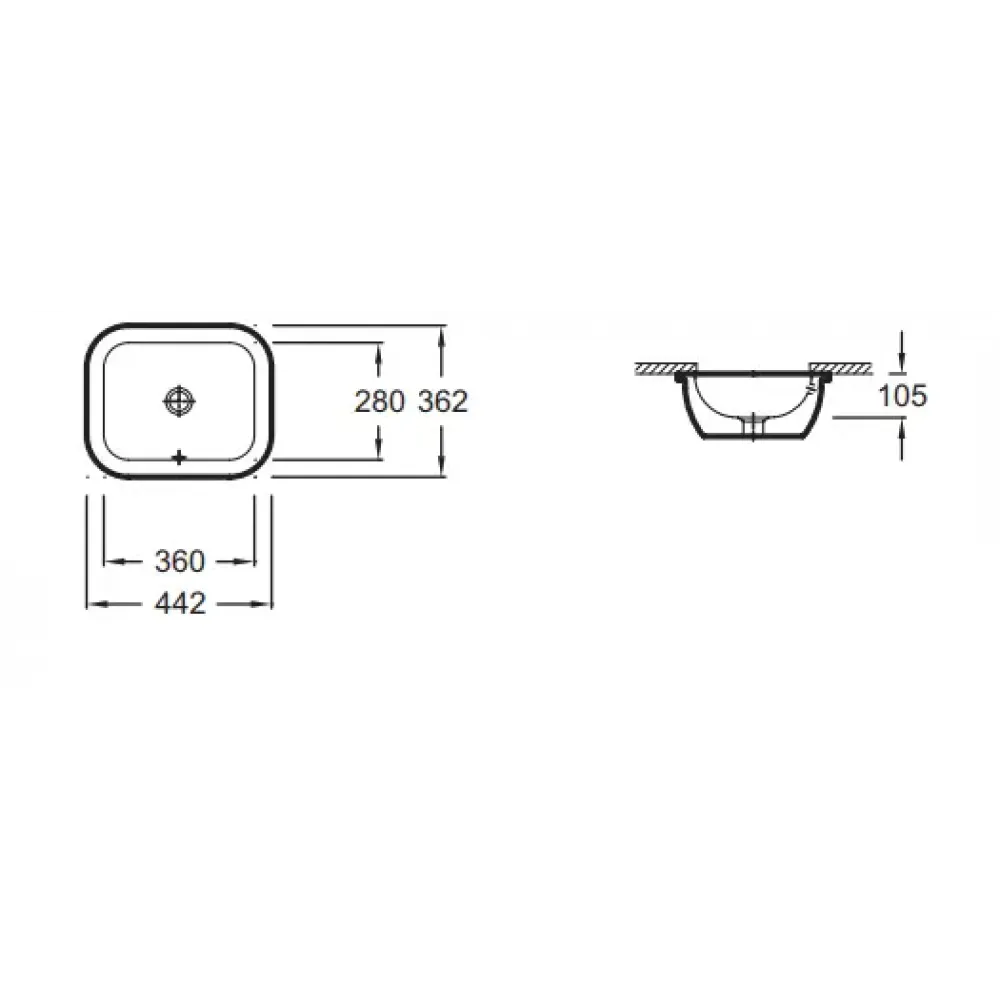 Технические характеристики Встраиваемая снизу раковина Vox 44,2х36 см, с переливным отверстием, санфарфор EYC102-00 Jacob Delafon