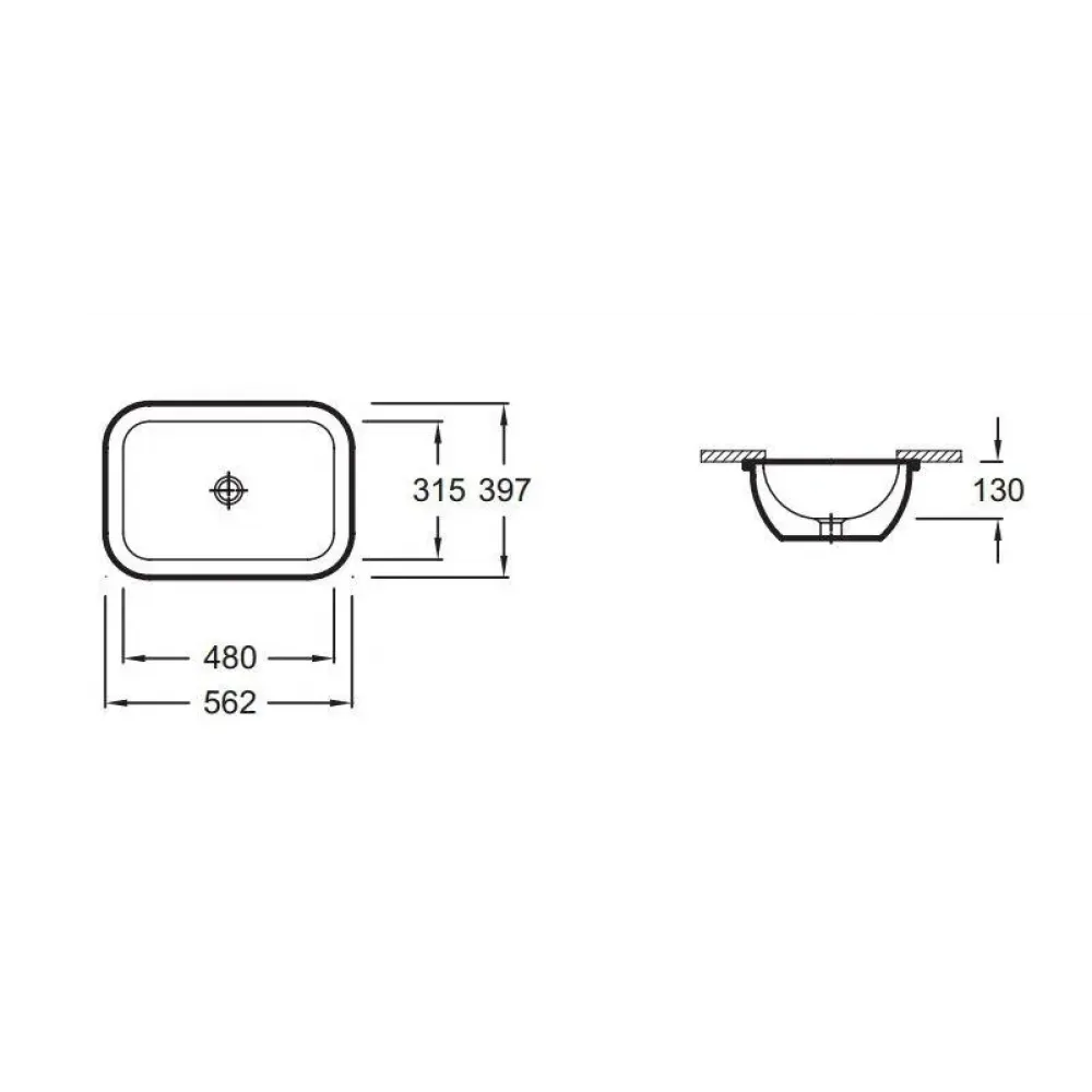 Технические характеристики Встраиваемая снизу раковина Vox 56,2х39,7 см, с отверстием для перелива, санфарфор EYA102-00 Jacob Delafon