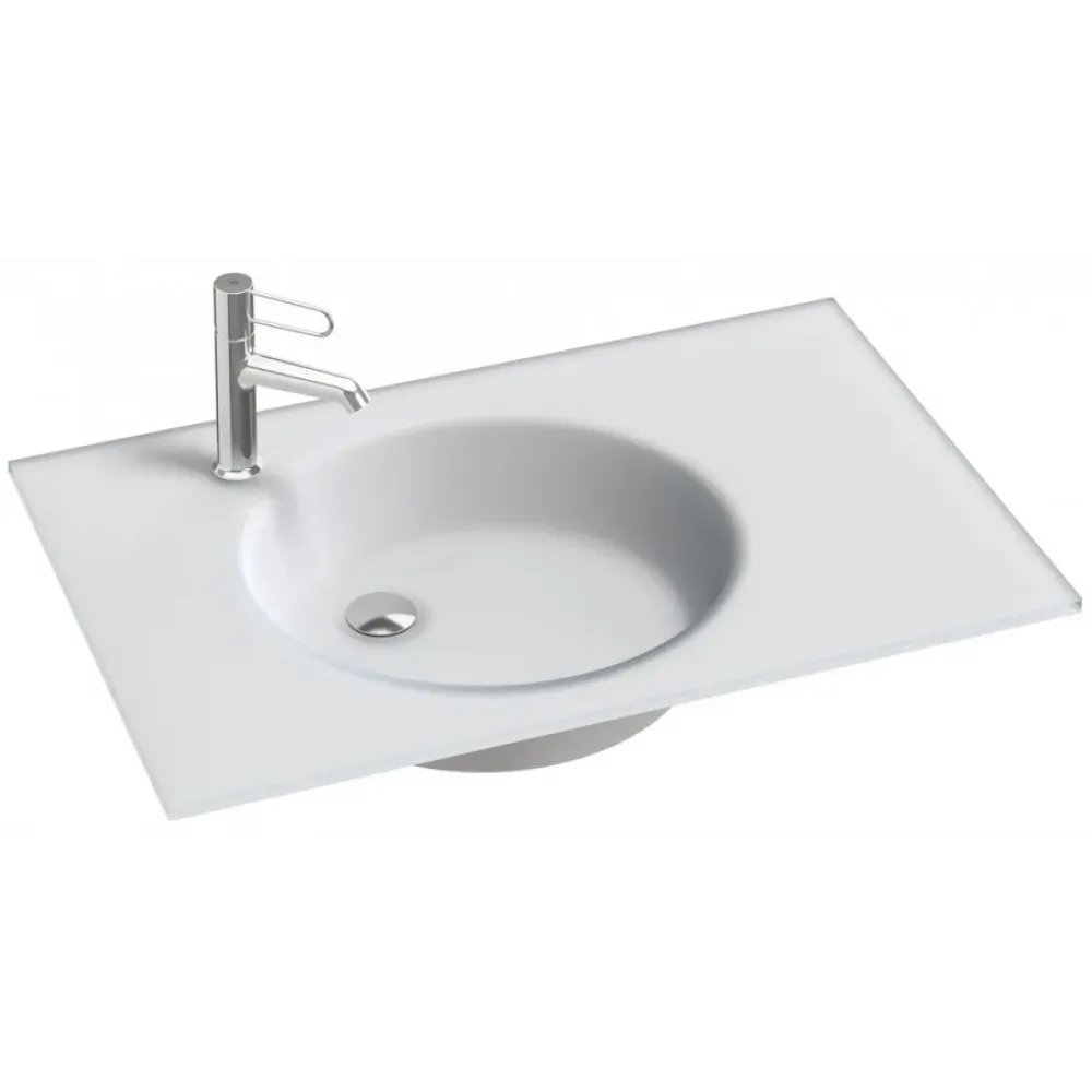 Раковина-столешница из матового стекла, 81 x 51 см, не предназначена для установки без мебели.