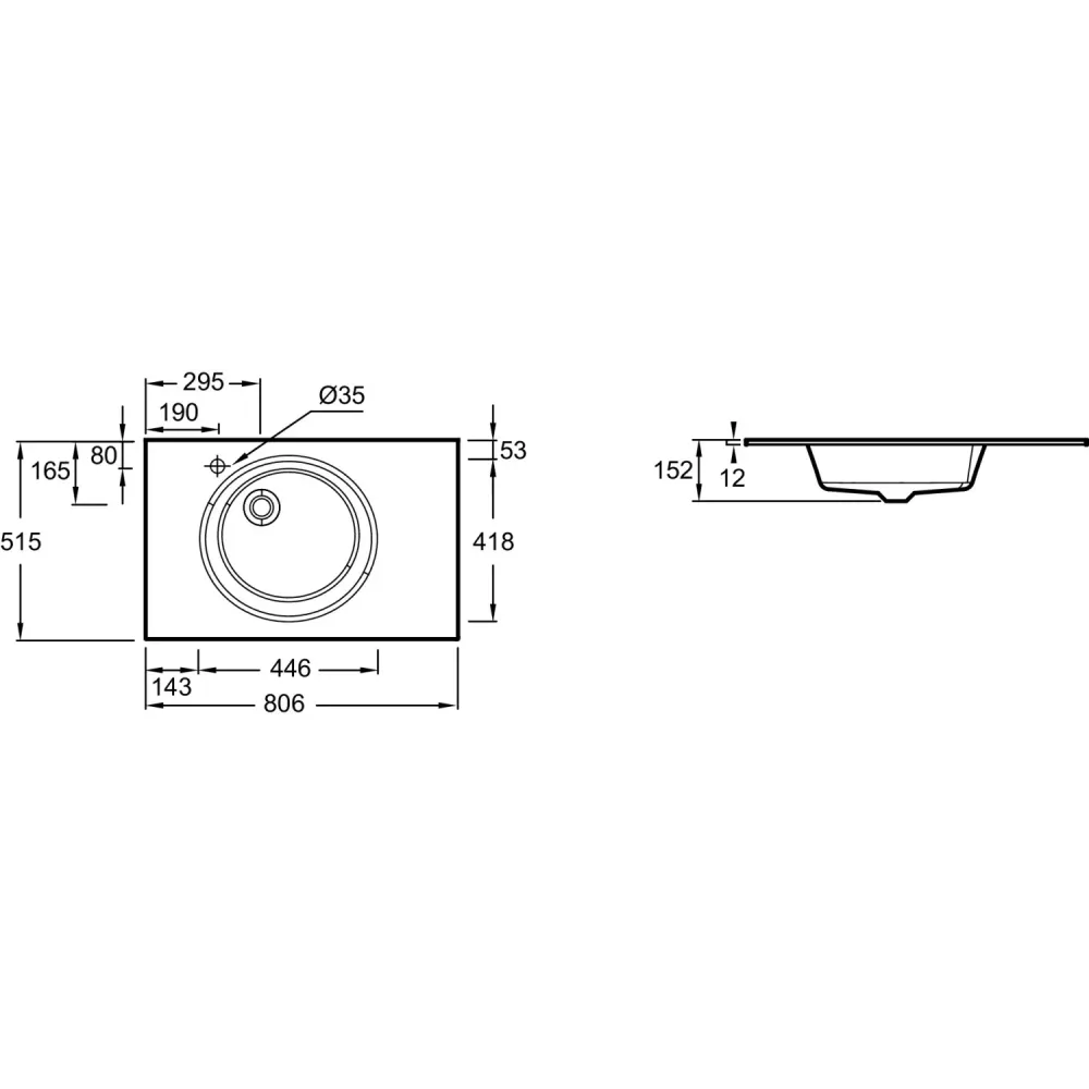 Технические характеристики Встраиваемая сверху раковина Odeon Rive Gauche 80,6х51,5 см, матовый белый, стекло, с отв. под смеситель EB2562-DE1 Jacob Delafon