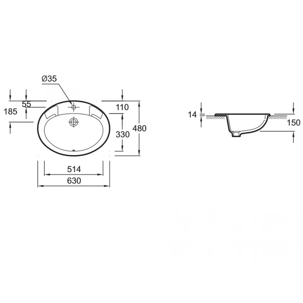 Ovaledessus 63х48см, встраиваемая сверху раковина, санфарфор, с отв. под смеситель, арт. E1273-00, Jacob Delafon