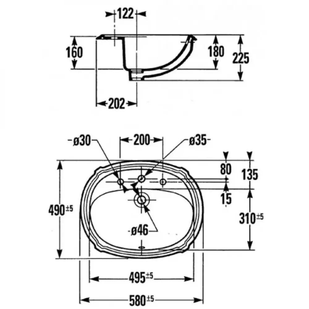 Технические характеристики Встраиваемая сверху раковина Portrait 58х49 см, санфарфор, с отв. под смеситель E1230-00 Jacob Delafon
