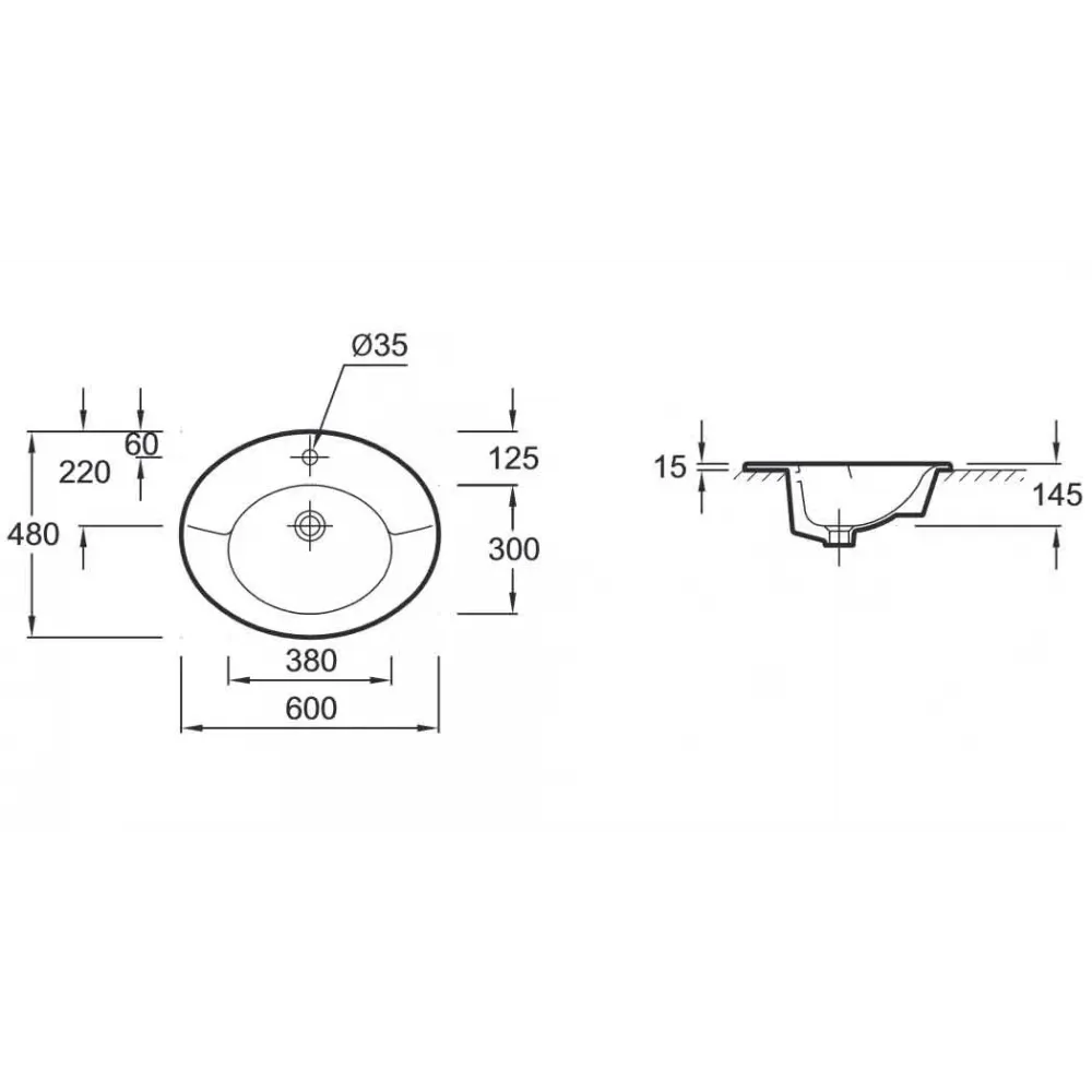 Технические характеристики Встраиваемая сверху раковина Presqu'ile 60х48 см, санфарфор, с отв. под смеситель E1250-00 Jacob Delafon