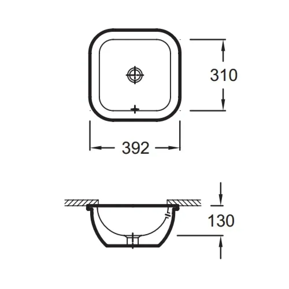 Встраиваемая квадратная раковина 39,2 х 39,2 см.