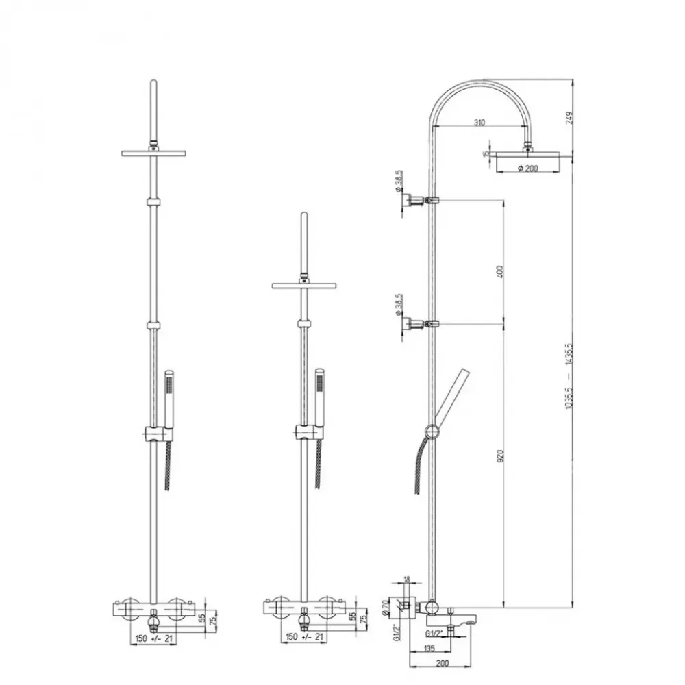 Душевая система фабрики "ПАИНИ" с термостатом и изливом.