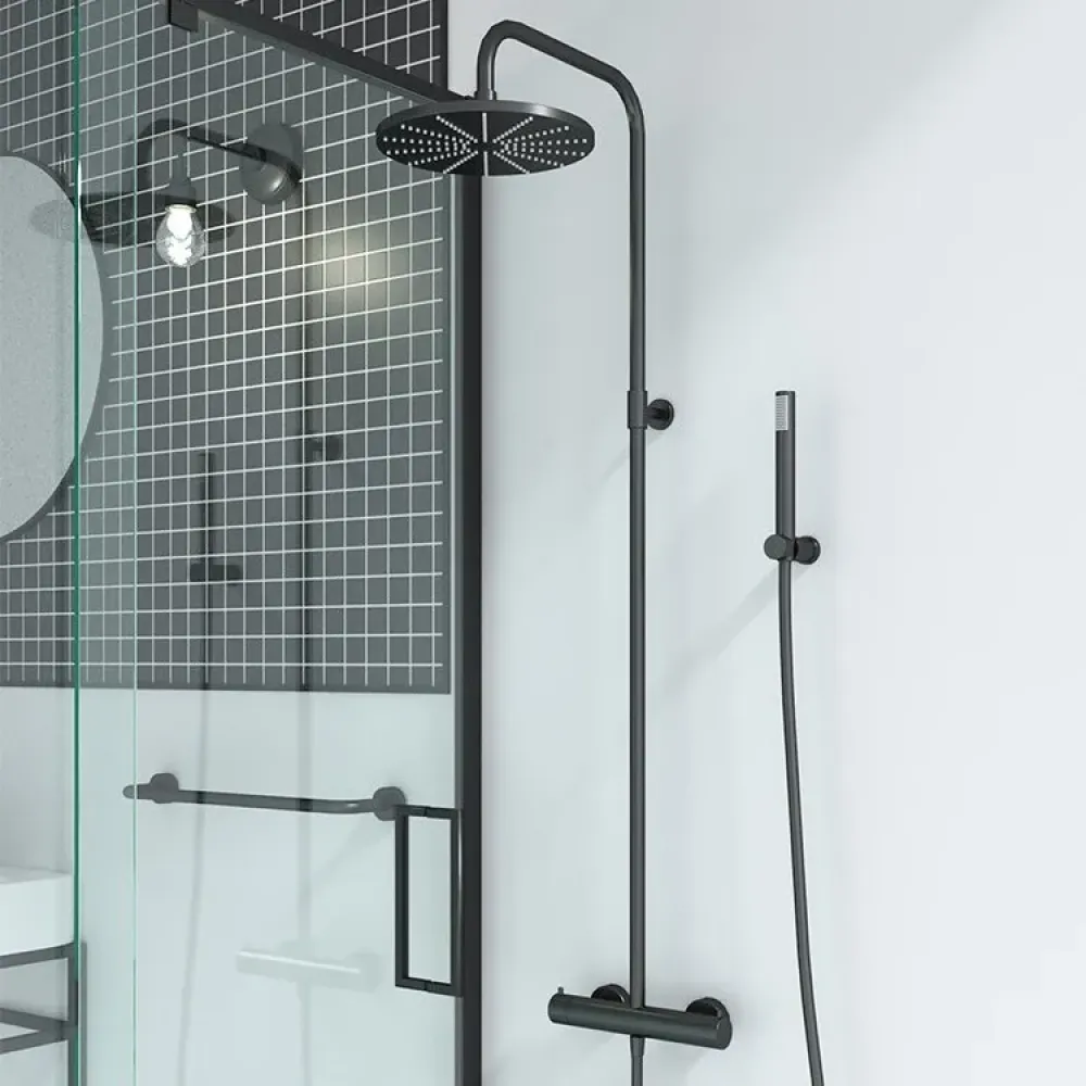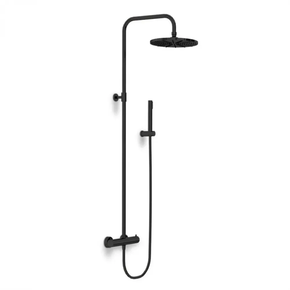 Душевая система с термостатом коллекции COX – стильный помощник в ежедневных водных процедурах. Оригинальная форма, цвета покрытия, способные украсить дом, расширенный набор функций. Термостат защищает от перепадов температуры воды. Роскошный золотой цвет, два варианта черного цвета (глянцевый и матовый) или сдержанный никель? Есть пространство для творчества!