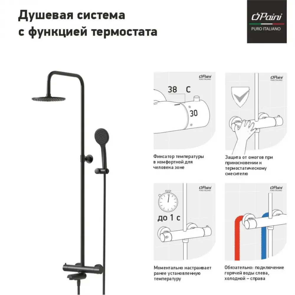 | Страна производстваИталия | Тип изделиядушевая система | Тип управления клавишейтермостат |