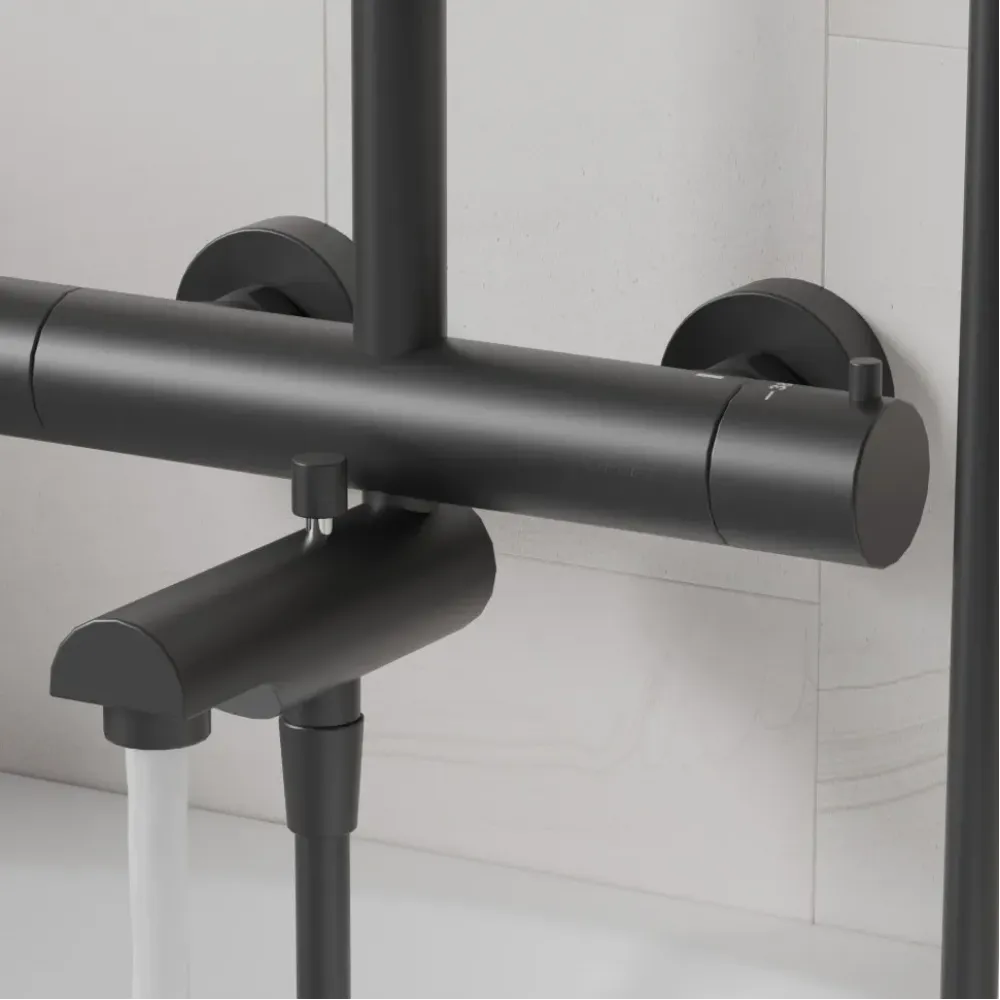 Латунный корпус выдержит царапины и химические повреждения. Система в цвете черный (YO) выполнена из латуни, финишное покрытие в технике порошковой окраски с использованием эпоксидных смол.