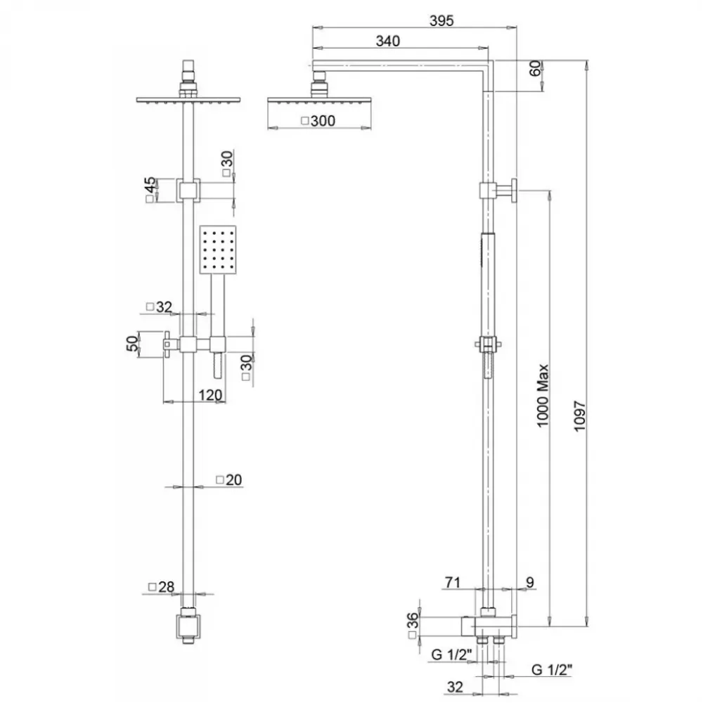 | Страна производстваИталия | Тип изделиядушевая система | Формаквадратная |