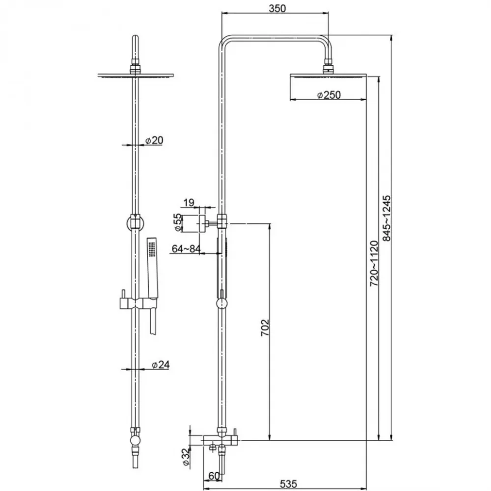 Высота крепления для лейки регулируется по росту самого высокого члена семьи с помощью телескопической штанги (система слайдер).