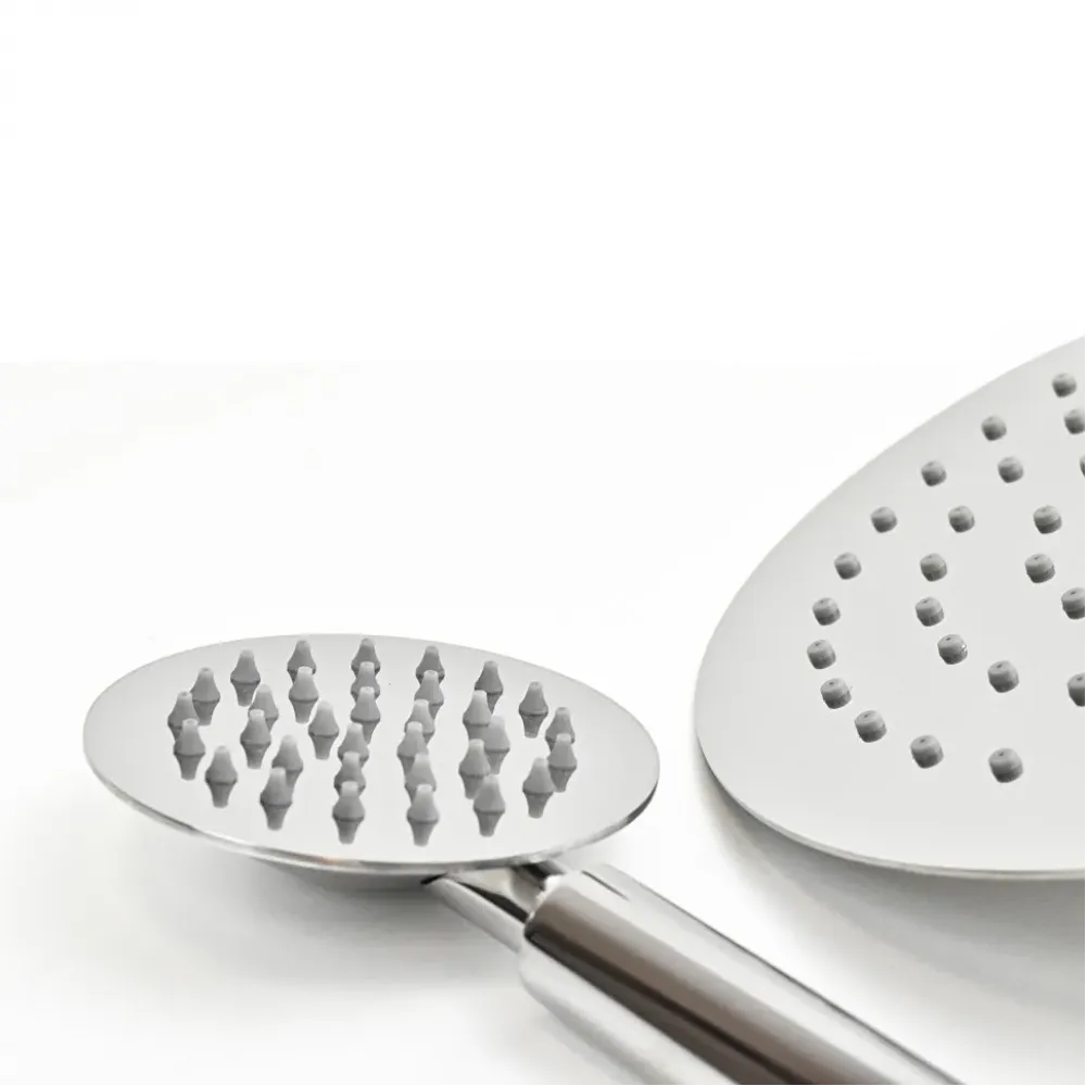 Размер тропического душа (верхнего рассеивателя) – 250 мм, поток воды покрывает все тело.