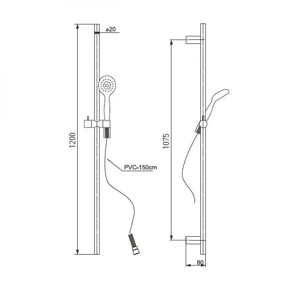 Длина штанги – 1200 мм. Система слайдер позволяет двигать крепление по штанге, регулируя положение лейки. Гарнитур монтируется по росту самого высокого члена семьи, для остальных можно опустить лейку на нужную высоту. В итоге удобно всем.