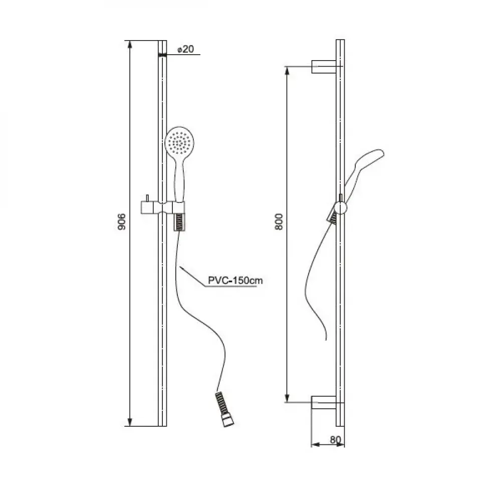 Высота штанги – 900 мм. Система слайдер позволяет двигать крепление по штанге, регулируя положение лейки. Гарнитур монтируется по росту самого высокого члена семьи, для остальных можно опустить лейку на нужную высоту. В итоге удобно всем.