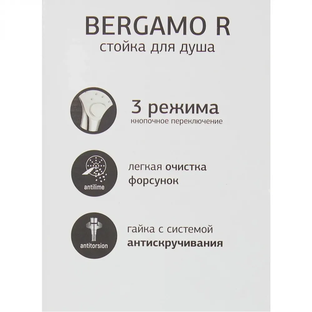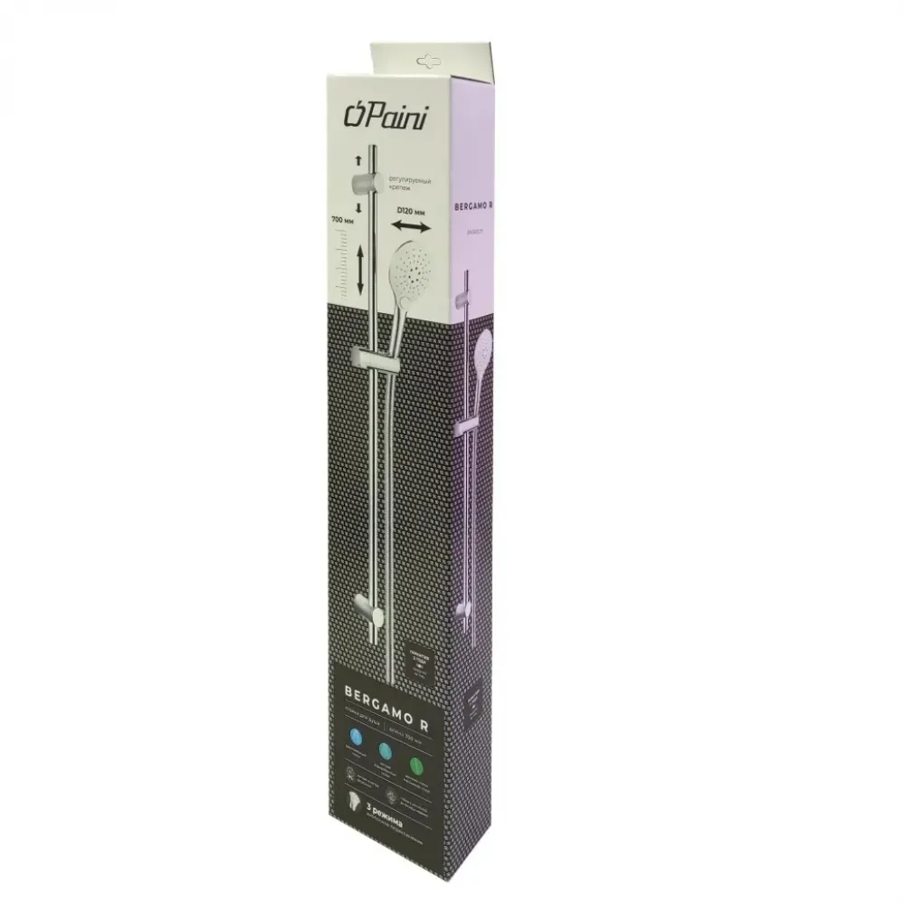Душевой гарнитур PAINI Bergamo R – практичное решение, обеспечивающее комфорт во время водных процедур для всей семьи. Стойка для ванной позволяет отрегулировать высоту по росту. Удобство использования и европейское качество гарнитура для ванной –секрет популярности такого варианта. Лейка с тремя режимами работы.