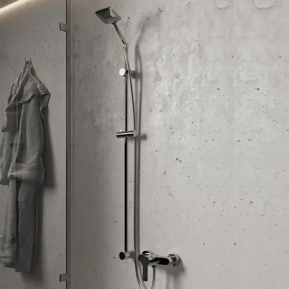 Модель снабжена креплением типа «слайдер», позволяющим быстро и просто регулировать высоту крепления душевой лейки на необходимой высоте.