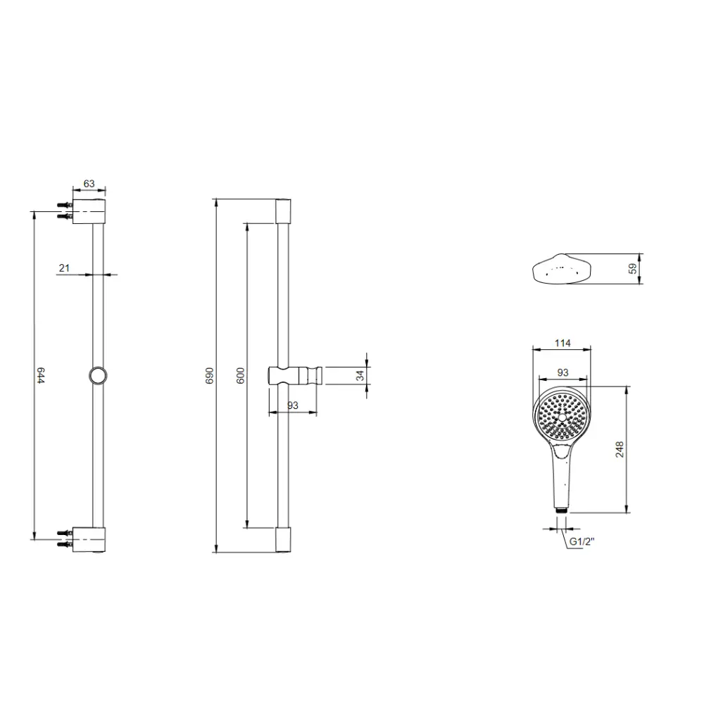 - Душевой комплект с тремя режимами струи для Настенный монтаж, Золото сатинированное