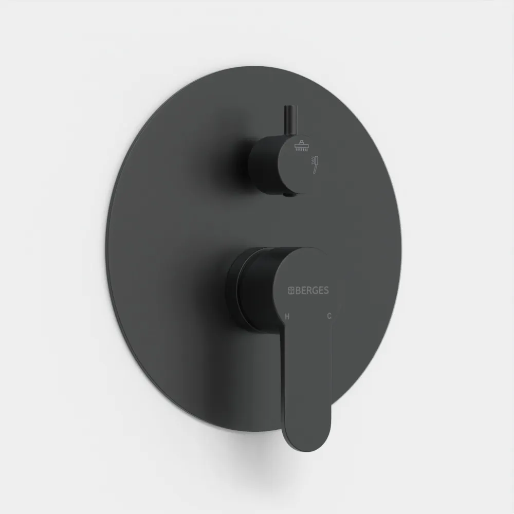 Душевой комплект BERGES NARDIS 2R BLACK - встраиваемый душевой комплект обладает двухрежимной системой и состоит из верхней лейки - «тропического ливня», ручного душа и смесителя. Лейка верхнего душа имеет инновационную систему самоочистки в виде гибких силиконовых вставок на форсунках душа, которые защищают изделие от известковых отложений. Комплект имеет матовое черное покрытие, которое выглядит безупречно на протяжении всего периода эксплуатации. Шланг выполнен из нержавеющей стали (внутри epdm), смеситель с латунным корпусом имеет керамический картридж с пропускной способностью 28 л/мин, все держатели и кронштейны сделаны из латуни и нержавеющей стали.