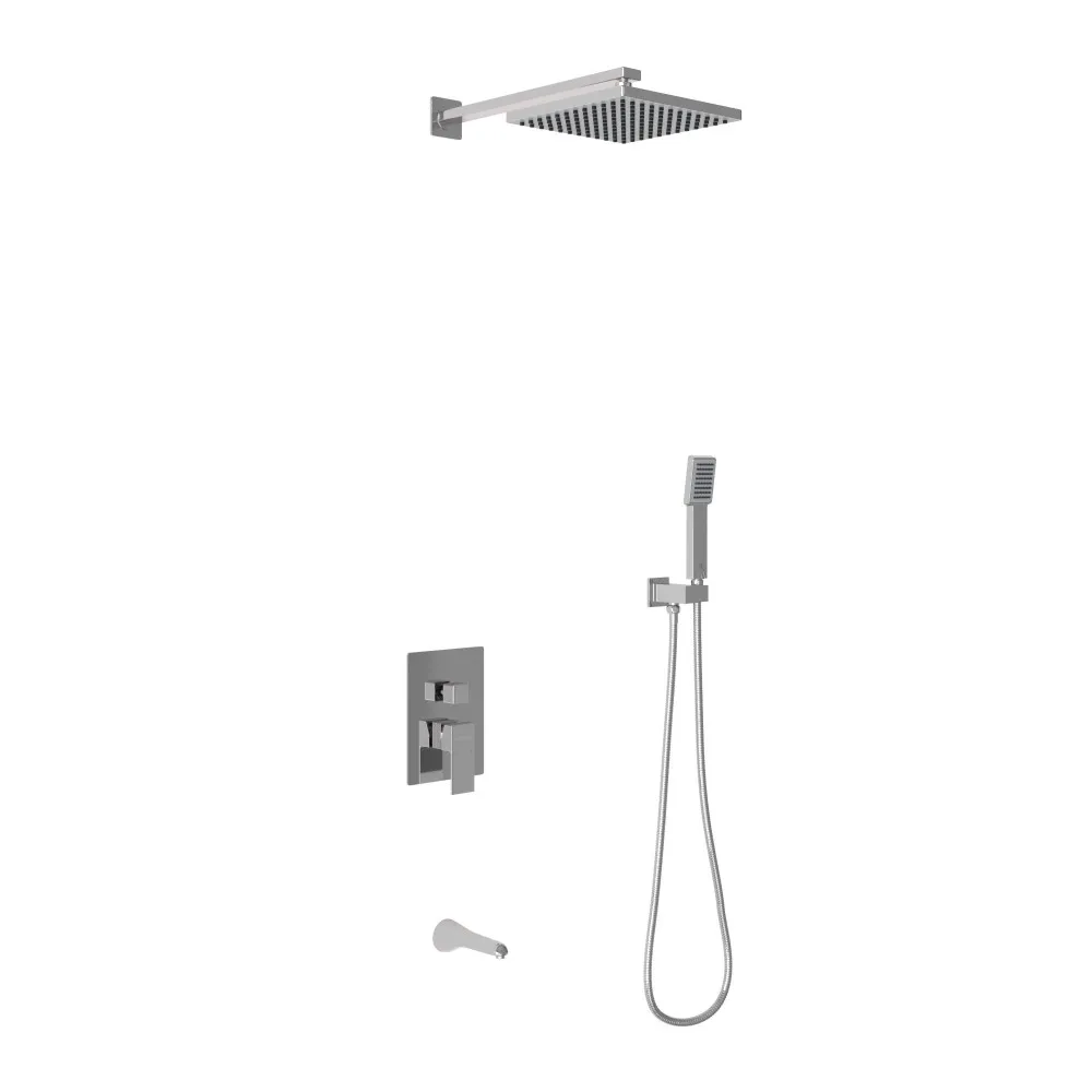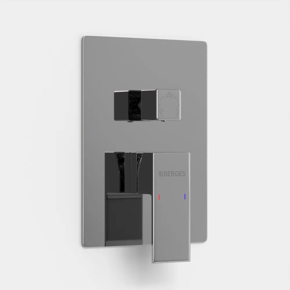 Душевой комплект BERGES NARDIS 3S - встраиваемый душевой комплект обладает трёхрежимной системой и состоит из верхней лейки - «тропического ливня», ручного душа, излива и смесителя. Лейка верхнего душа имеет инновационную систему самоочистки в виде гибких силиконовых вставок на форсунках душа, которые защищают изделие от известковых отложений. Изготовлены оба душа из ABS пластика, имеют хромоникелевое покрытие, которое выглядит безупречно на протяжении всего периода эксплуатации. Шланг выполнен из нержавеющей стали (внутри epdm), смеситель с латунным корпусом имеет керамический картридж с пропускной способностью 28 л/мин, все держатели и кронштейны сделаны из латуни и нержавеющей стали.