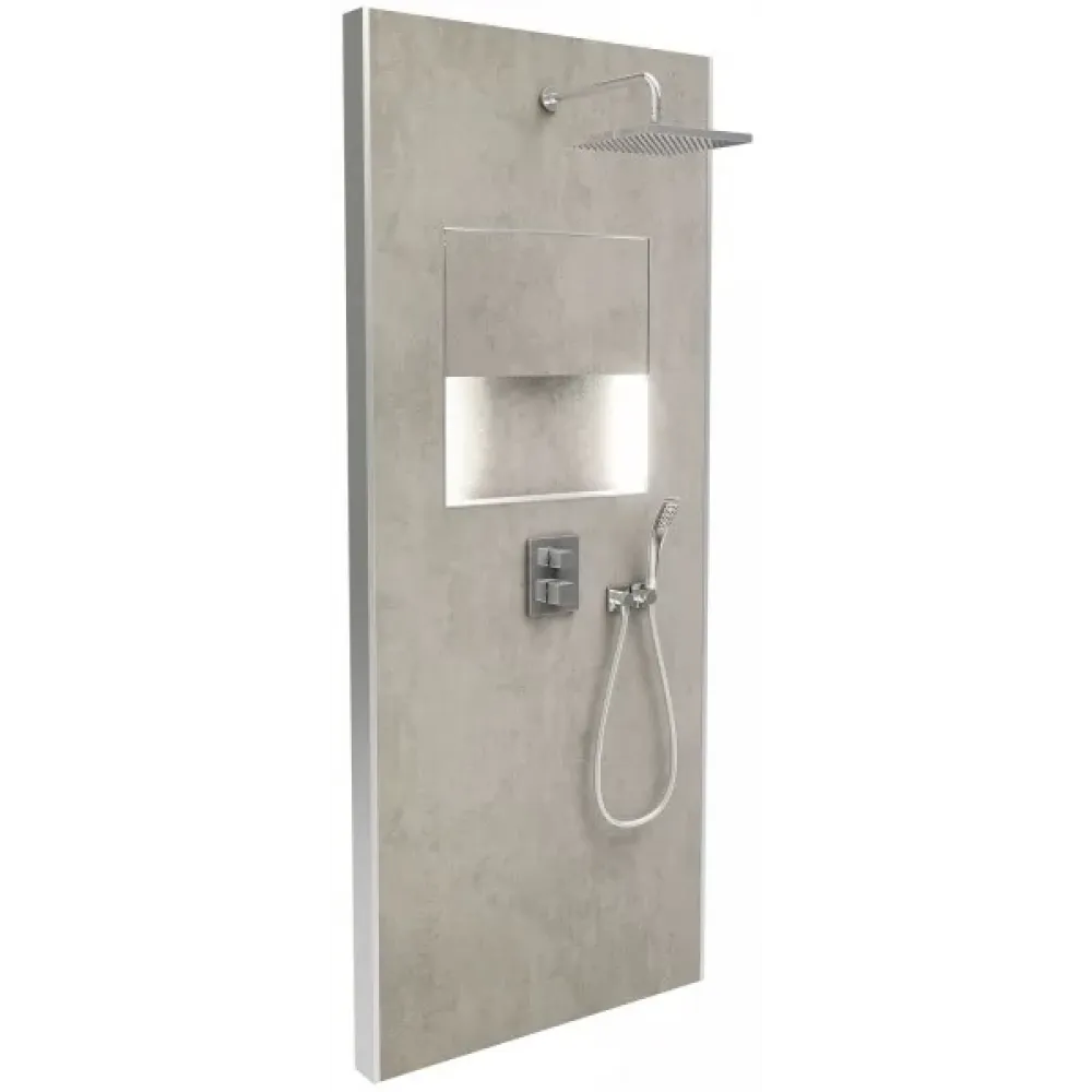 Душевой сет со стеновой панелью Ecrin 100х233,5 см, облачно-серый, квадратная лейка, подсветка, термостат, верхний душ, с лейкой E803021-D35 Jacob Delafon