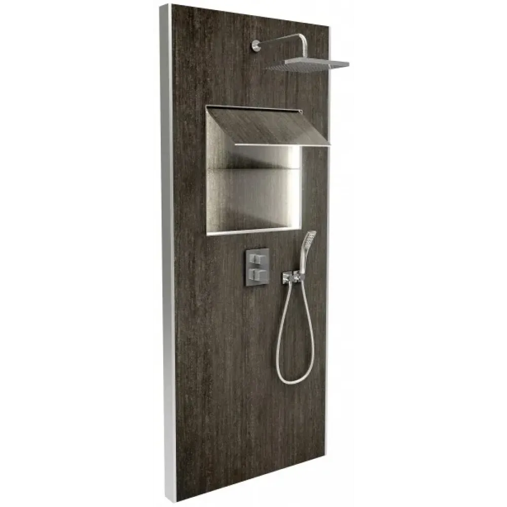 Душевой сет со стеновой панелью Ecrin 100х233,5 см, темный дуб, квадратная лейка, подсветка, термостат, верхний душ, с лейкой E803021-D34 Jacob Delafon