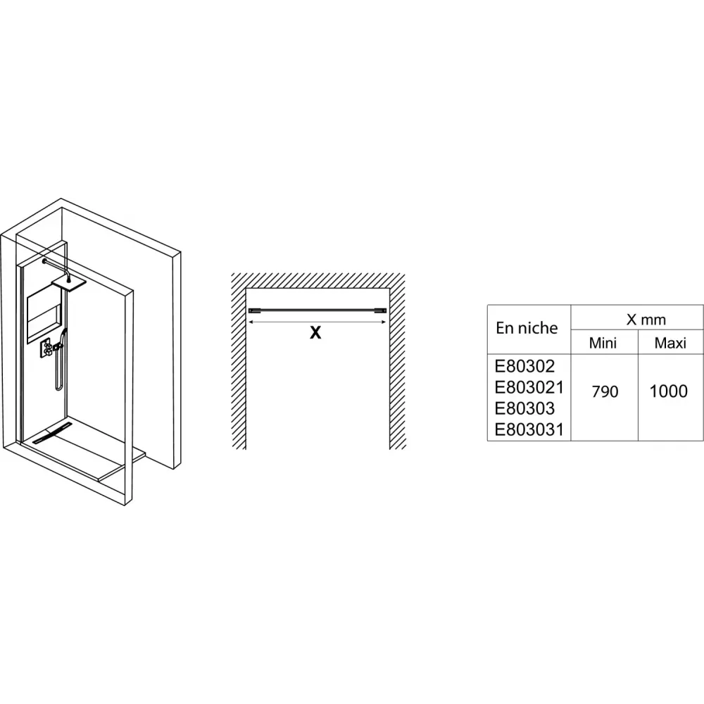 Технические характеристики Душевой сет со стеновой панелью Ecrin 100х233,5 см, темный гранит, круглая лейка, подсветка, термостат, верхний душ, с лейкой E803031-D39 Jacob Delafon