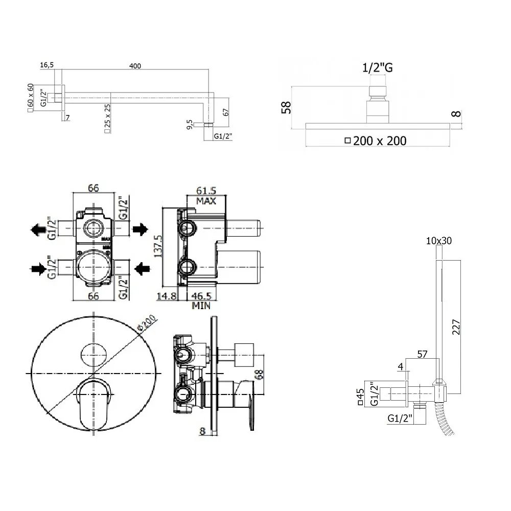 • ZSOF075BO Верхний душ 200x200 8мм SYNCRO, антикальций белый матовый Paffoni