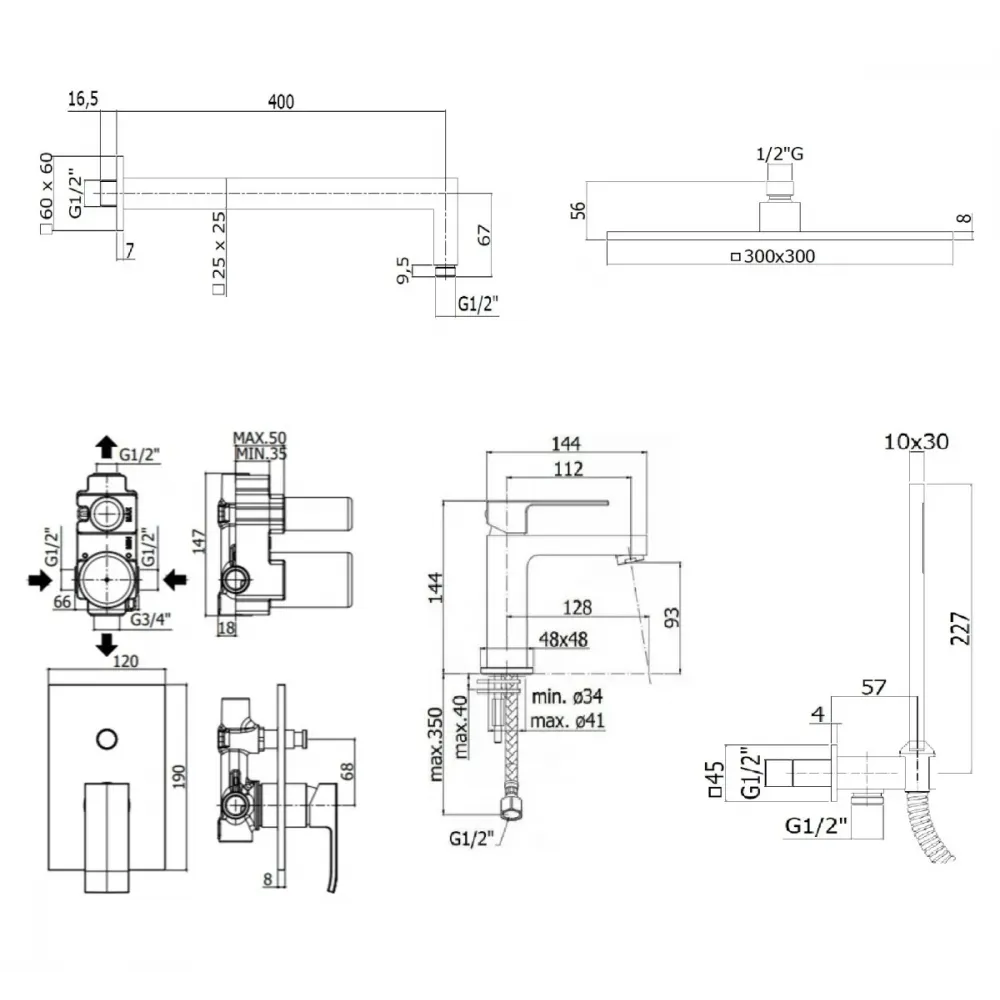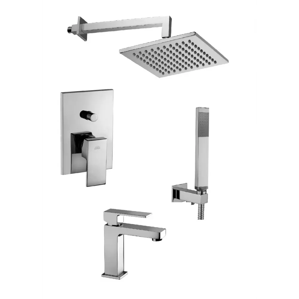 Комплект KITEL015CR071KING со смесителем для раковины EL071CR, смеситель для душа EL015CR/M на 2 выхода, душ 300x300 мм, ELLE, хром Paffoni