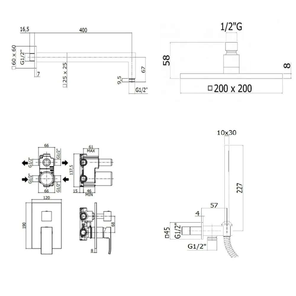 Комплект KITEL018CR/M для душа со смесителем EL018NO/M на 2 выхода, душ 200мм, ELLE, хром Paffoni