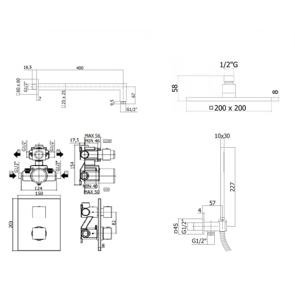 • LEQ518CR/M Смеситель термостат встраиваемый для душа 2 вых., 150х200мм LEVEL Paffoni