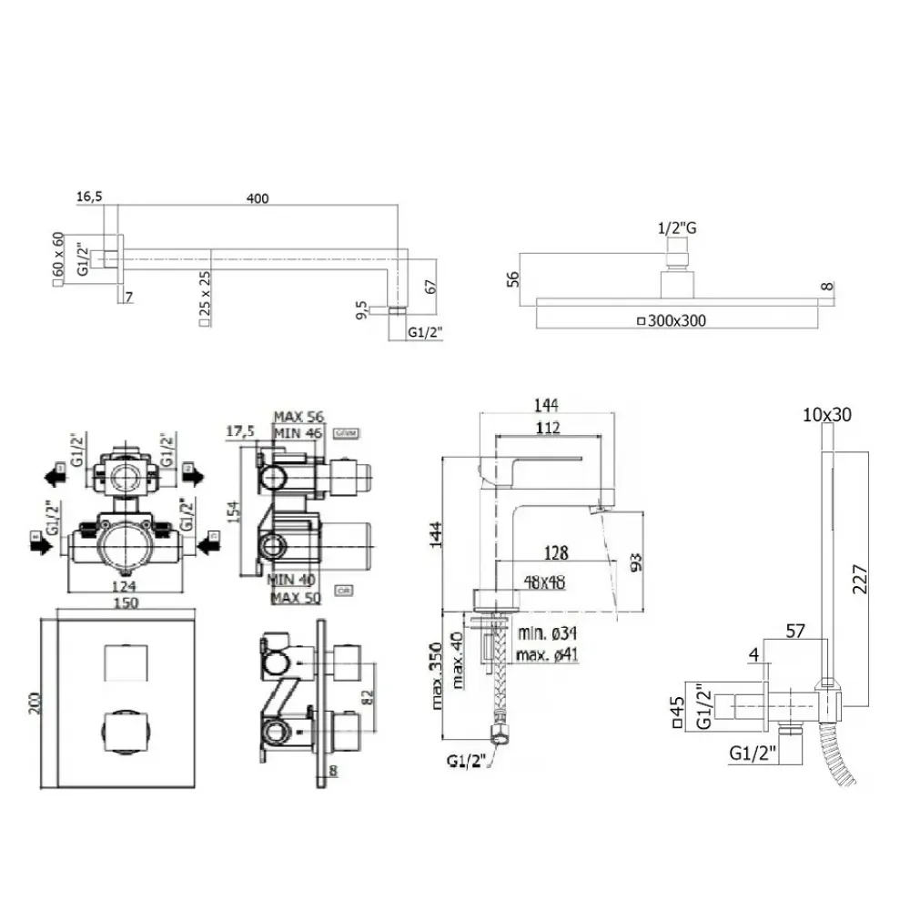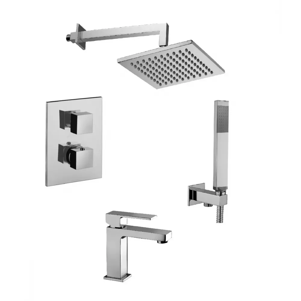 Комплект KITLEQ518CR071KING термостатический, для душа, со смесителем LEQ518CR071 на 2 выхода, смеситель для раковины EL071CR, душ 300x300 мм, ELLE, хром Paffoni