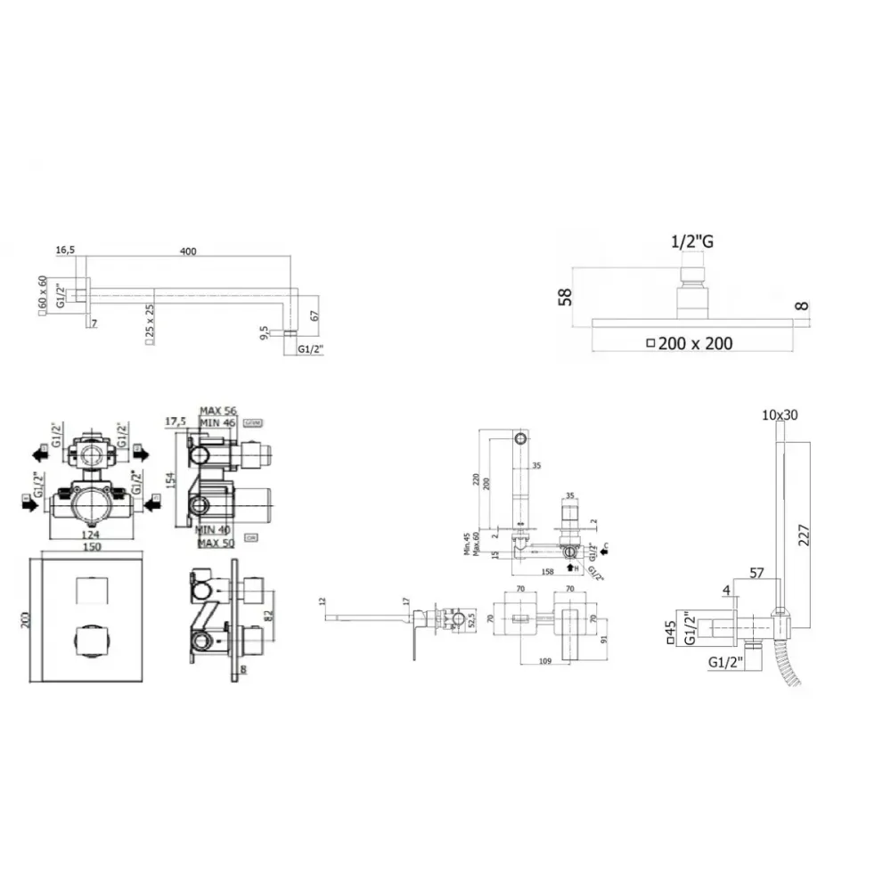Комплект KITLEQ518CR105 термостатический, для душа, со смесителем EQ518CR на 2 выхода, смеситель для раковины EL105CR70, душ 200x200 мм, ELLE, хром Paffoni