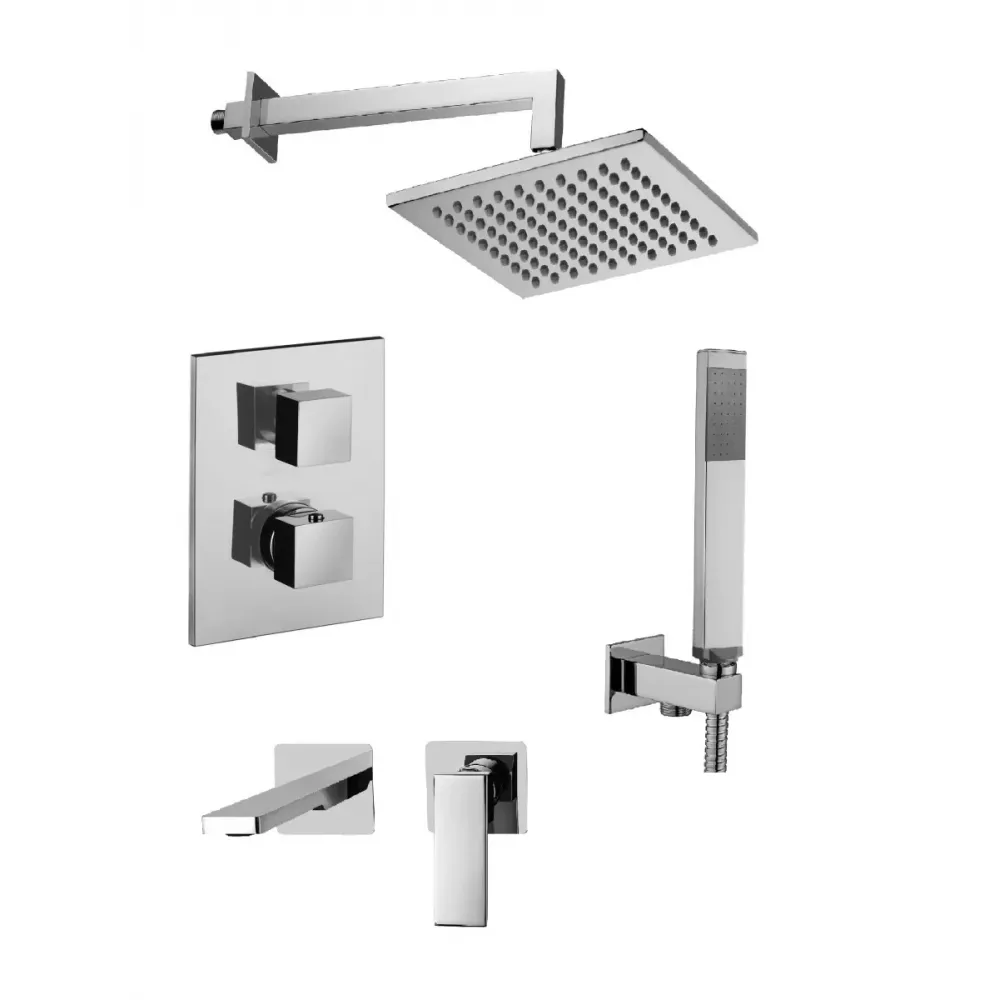 Комплект KITLEQ518CR105KING термостатический, для душа, со смесителем EQ518CR на 2 выхода, смеситель для раковины EL105CR70, душ 300x300 мм, ELLE, хром Paffoni