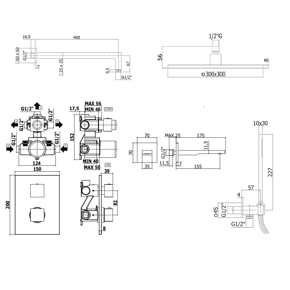 Комплект KITLEQ519CR120KING термостатический, для душа, со смесителем LEQ519CR на 3 выхода, излив 150мм, душ 300x300 мм, ELLE, хром Paffoni