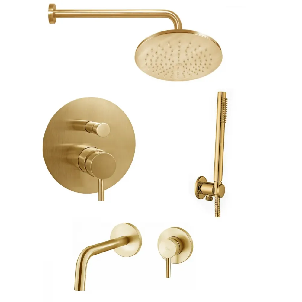 Комплект KITLIG015HGSP006 со встраиваемым смесителем для раковины LIG006HGSP70, смеситель для душа LIG015HGSP на 2 выхода, душ 225мм, LIGHT, медовое золото брашированное