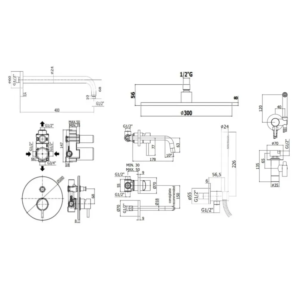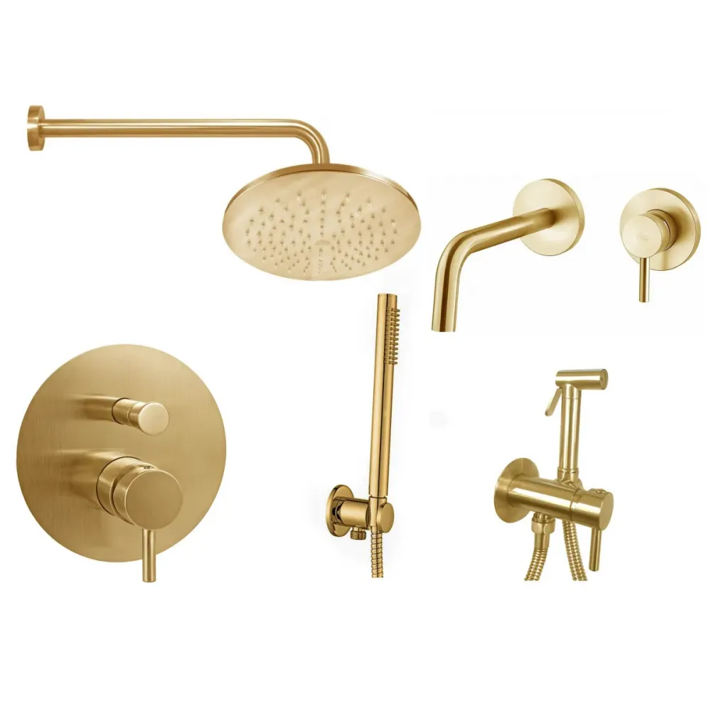 Комплект KITZLIG015HGSP006 с гигиеническим душем, со встраиваемым смесителем для раковины LIG006HGSP70, смеситель для душа LIG015HGSP на 2 выхода, душ 300мм, LIGHT, медовое золото брашированное- 1 шт