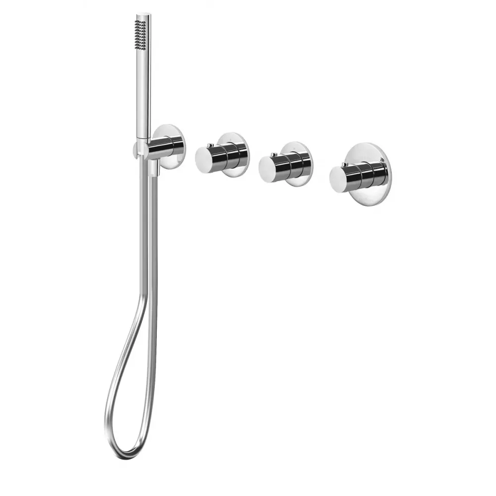 • MDE000CR Внешняя часть смесителя ТЕРМОСТАТ на 2 выхода, в комплекте с ручным душем, для использования только с арт. MDBOX000, расположение ТОЛЬКО гориз