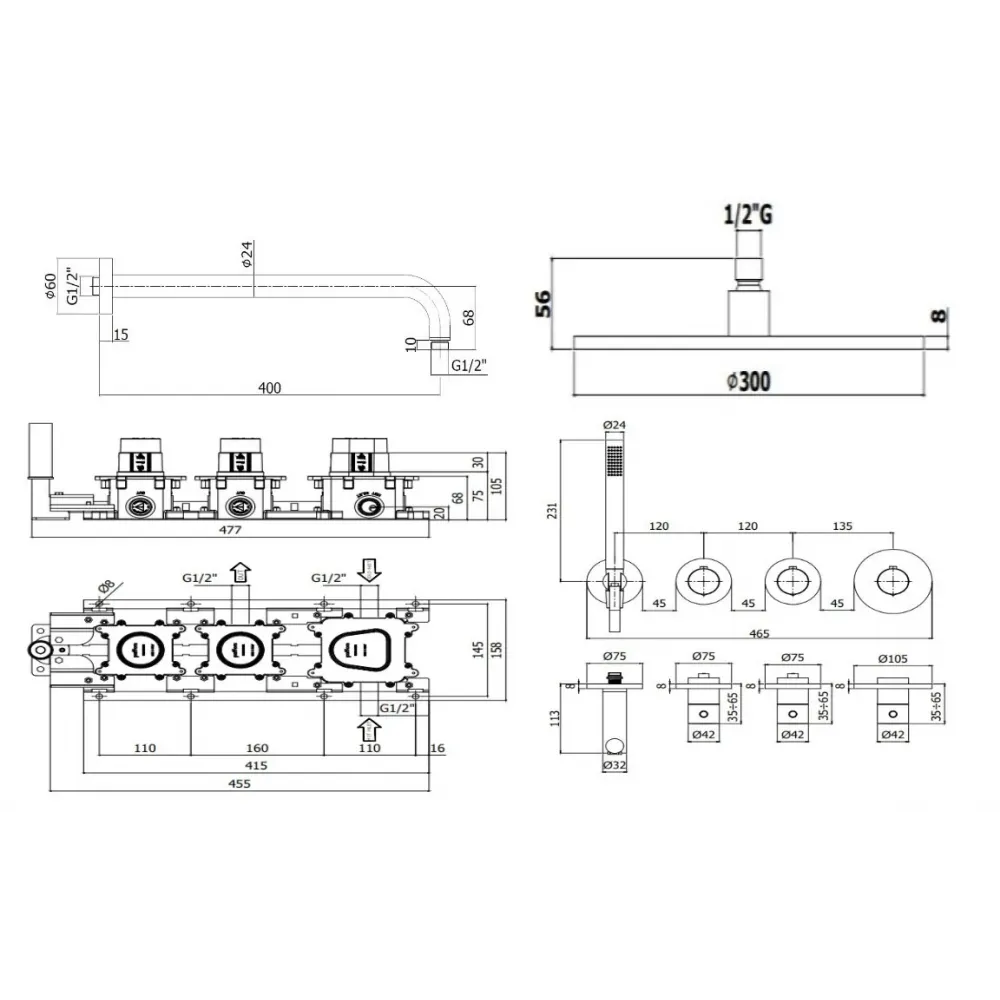 • MDE000HGSP Внешняя часть смесителя ТЕРМОСТАТ на 2 выхода, в комплекте с ручным душем, для использования только с арт. MDBOX000, расположение ТОЛЬКО гор