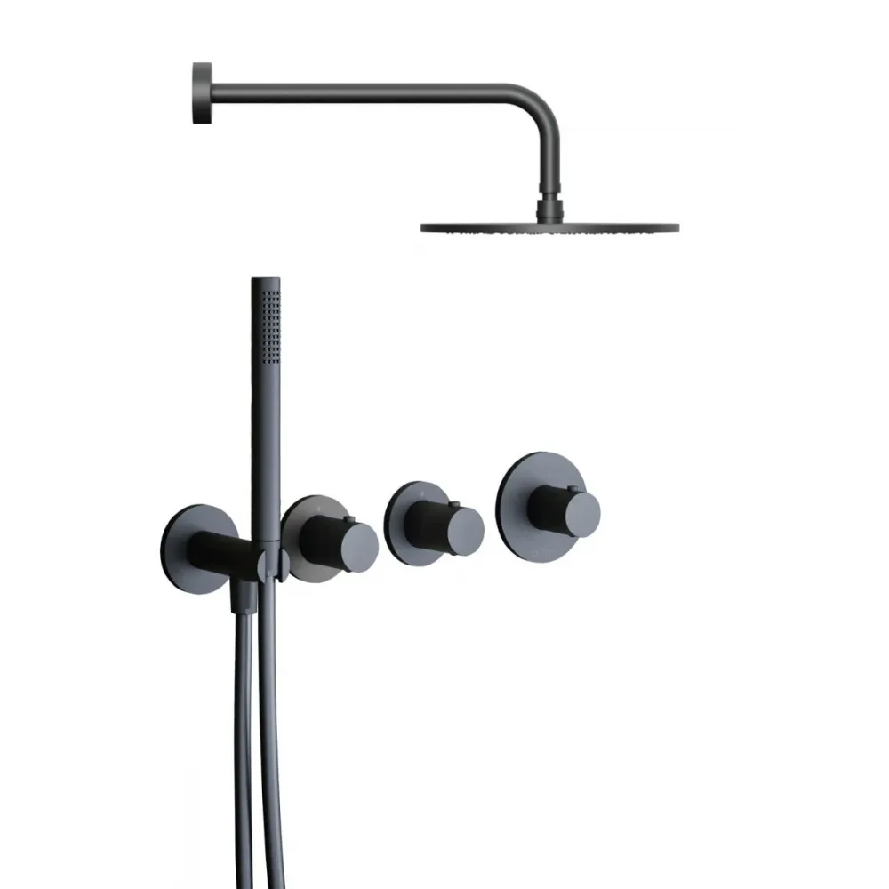 Комплект KITMB000NO со смесителем MDE000NO на 2 выхода, душ 225мм, с внутренней частью, MODULAR BOX, черный матовый Paffoni