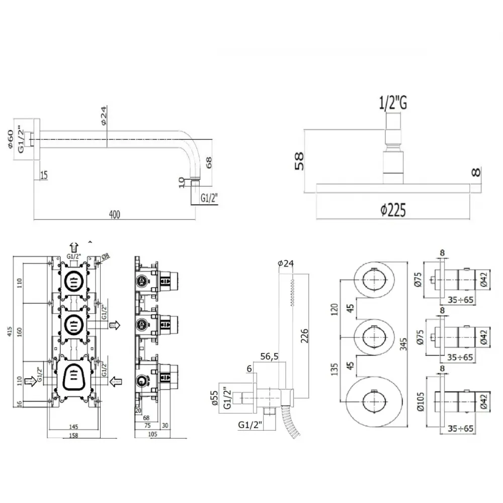 • MDE018HGSP Внешняя часть смесителя ТЕРМОСТАТ, для использования только с арт.MDBOX018, на 2 выхода, расположение горизонтальное или вертикальное. В