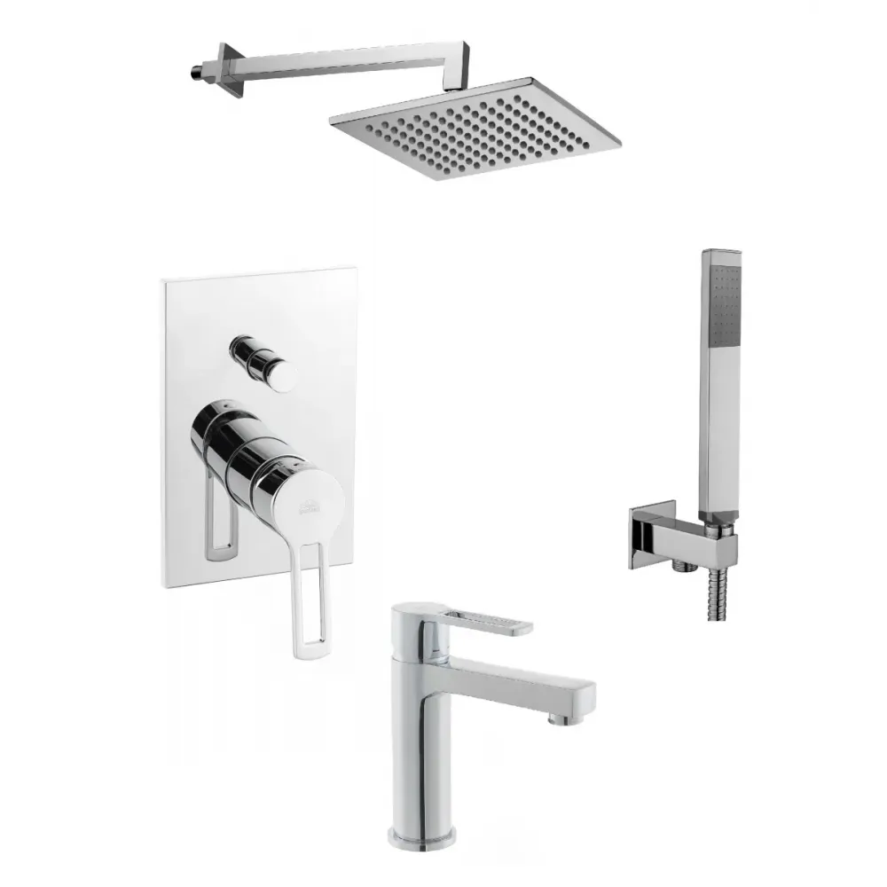 Комплект KITRIN015CR071 со смесителем для раковины RIN071CR, смеситель для душа RIN015CR/M на 2 выхода, душ 200x200 мм, Ringo, хром Paffoni