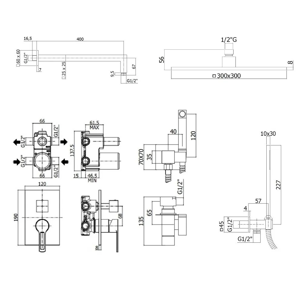 Комплект KITZRIN015CR/MKING для душа, с гигиеническим душем, со смесителем RIN015CR/M на 2 выхода, душ 300x300 мм, Ringo, хром Paffoni