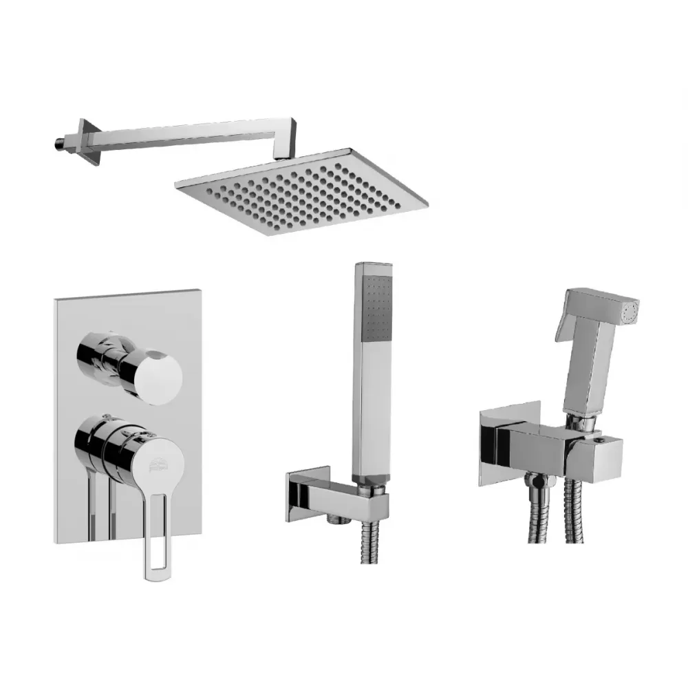 Комплект KITZRIN018CR/MKING для душа, с гигиеническим душем, со смесителем RIN018CR/M на 2 выхода, душ 300x300 мм, Ringo, хром Paffoni